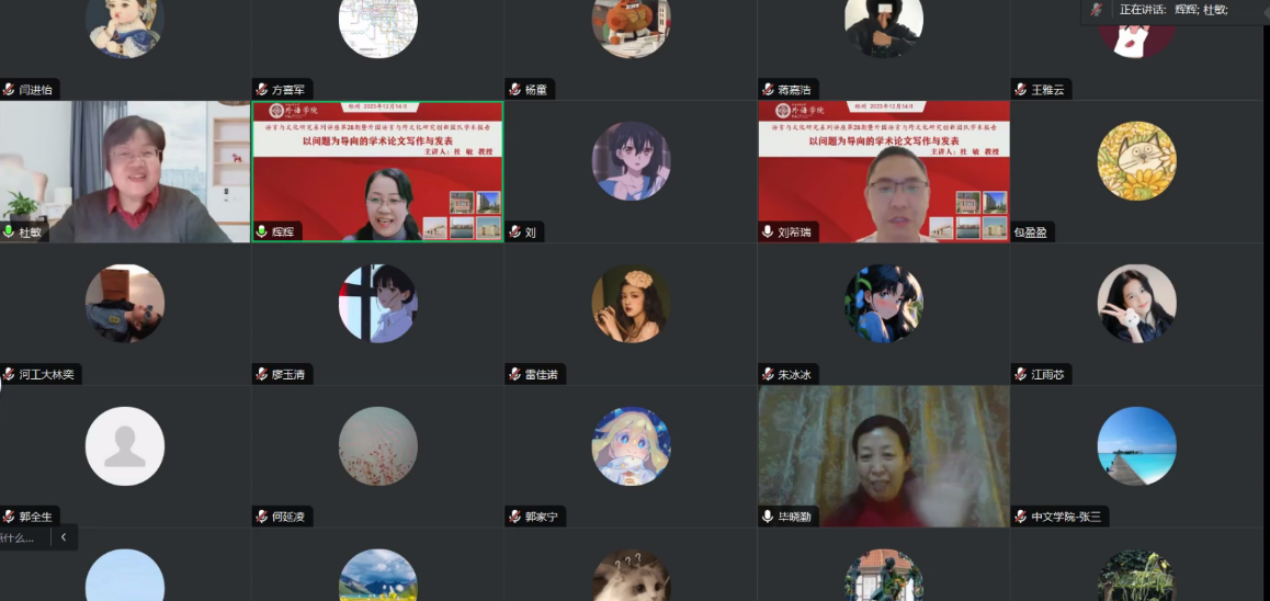 2023年12月14日晚,陕西师范大学学报编辑部杜敏教授应邀在线为我校师生做题为“以问题为导向的学术论文写作与发表”的学术报告。我校色情短视频