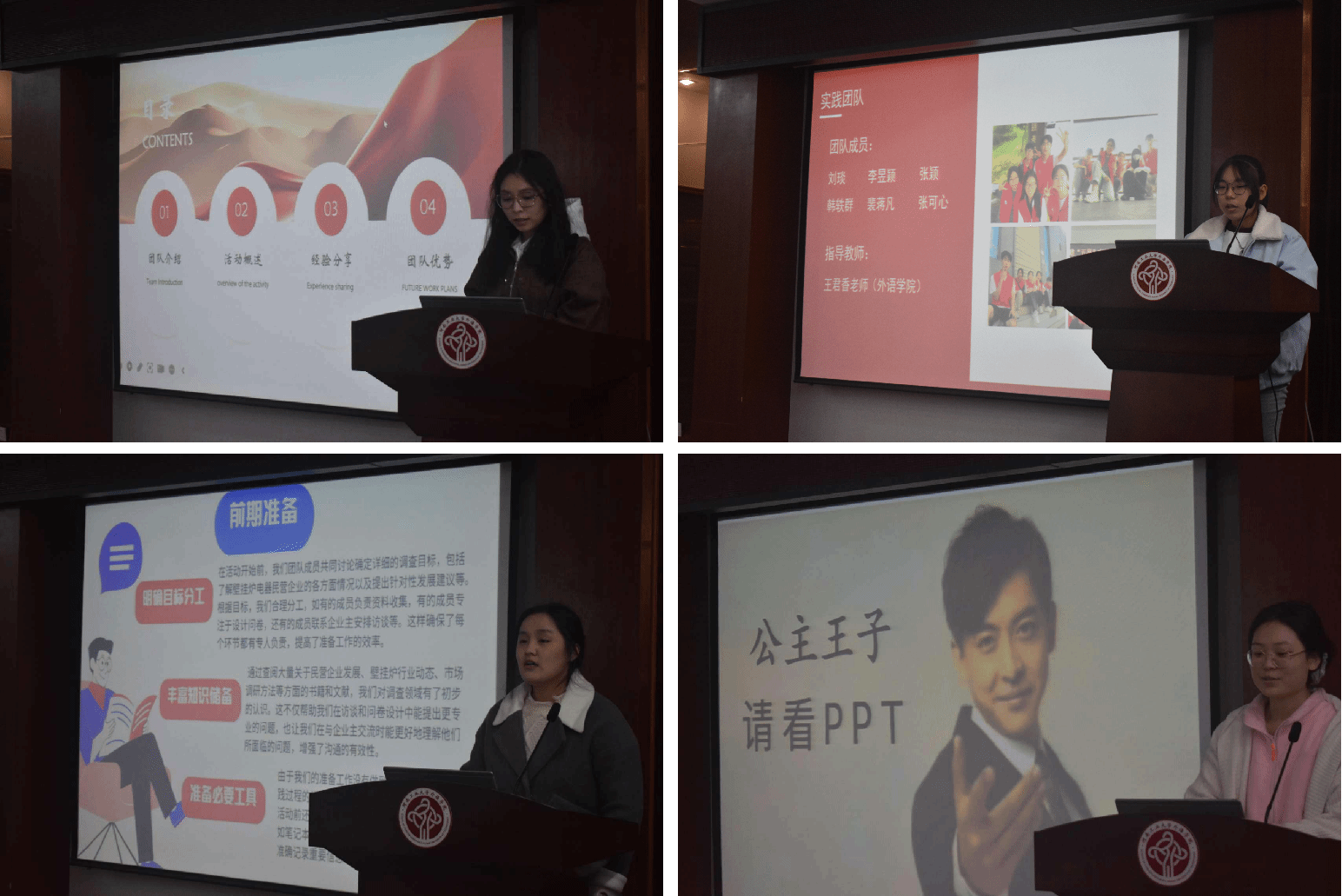在经验分享环节,五个优秀团队依次登场,分别从前期准备、活动概述、成果展示、心得体会等方面进行交流分享。她们的讲述生动细致,为在座的同学提供了新的思路,激励着更多的同学投身到社会实践中去。