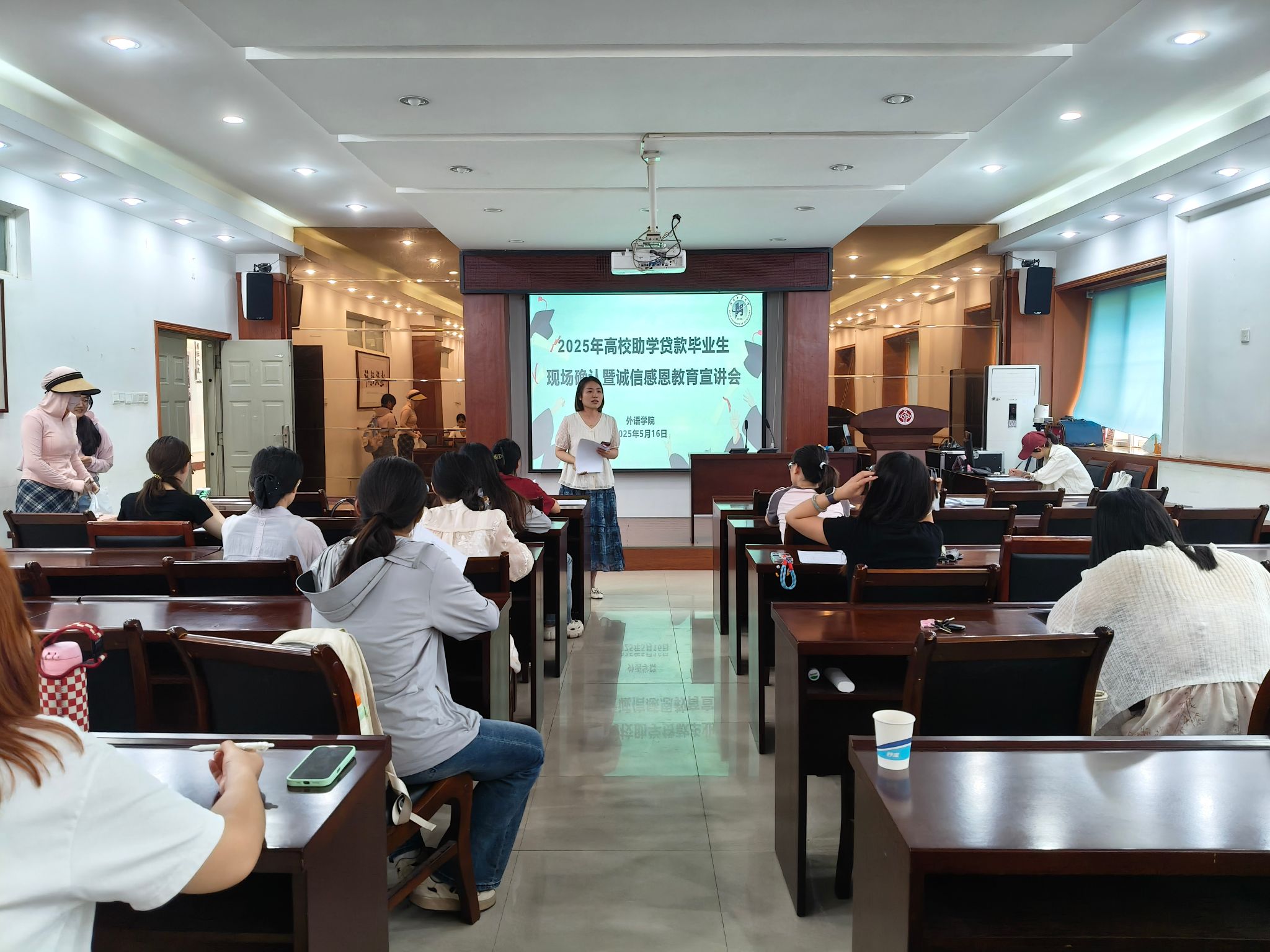 在博闻楼5225会议室于5月15日、16日分别召开了2025届高校和生源地助学贷款毕业生现场确认暨诚信感恩教育宣讲会。学院学生资助工作负责人郭珊珊、资助助理及未结清助学贷款的毕业生参加了会议。