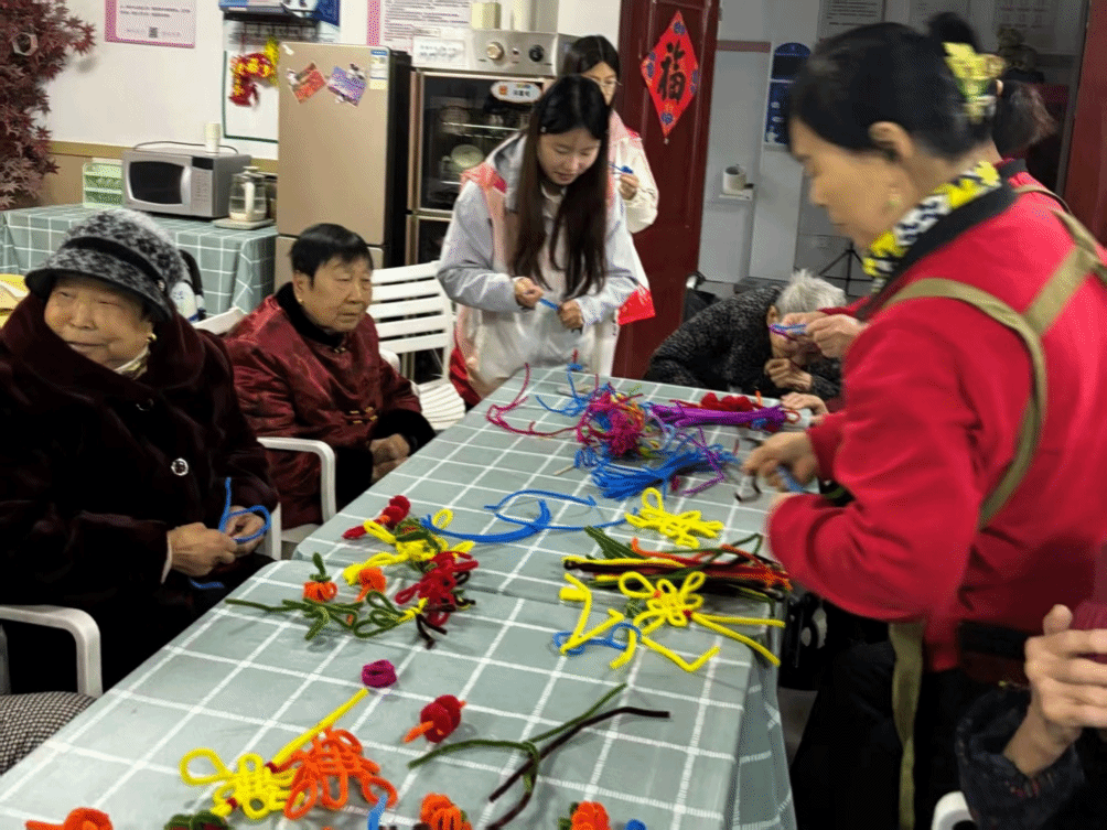 3月7日上午,学院组织学生志愿者前往郑州晚晴养老服务中心开展志愿服务活动,用实际行动传递新时代青年的温暖与关怀。活动中,志愿者在手工制作区教老人制作扭扭棒手工花,针对编织步骤复杂的情况,采用手把手教学的方式,悉心协助行动不便老人完成作品制作。