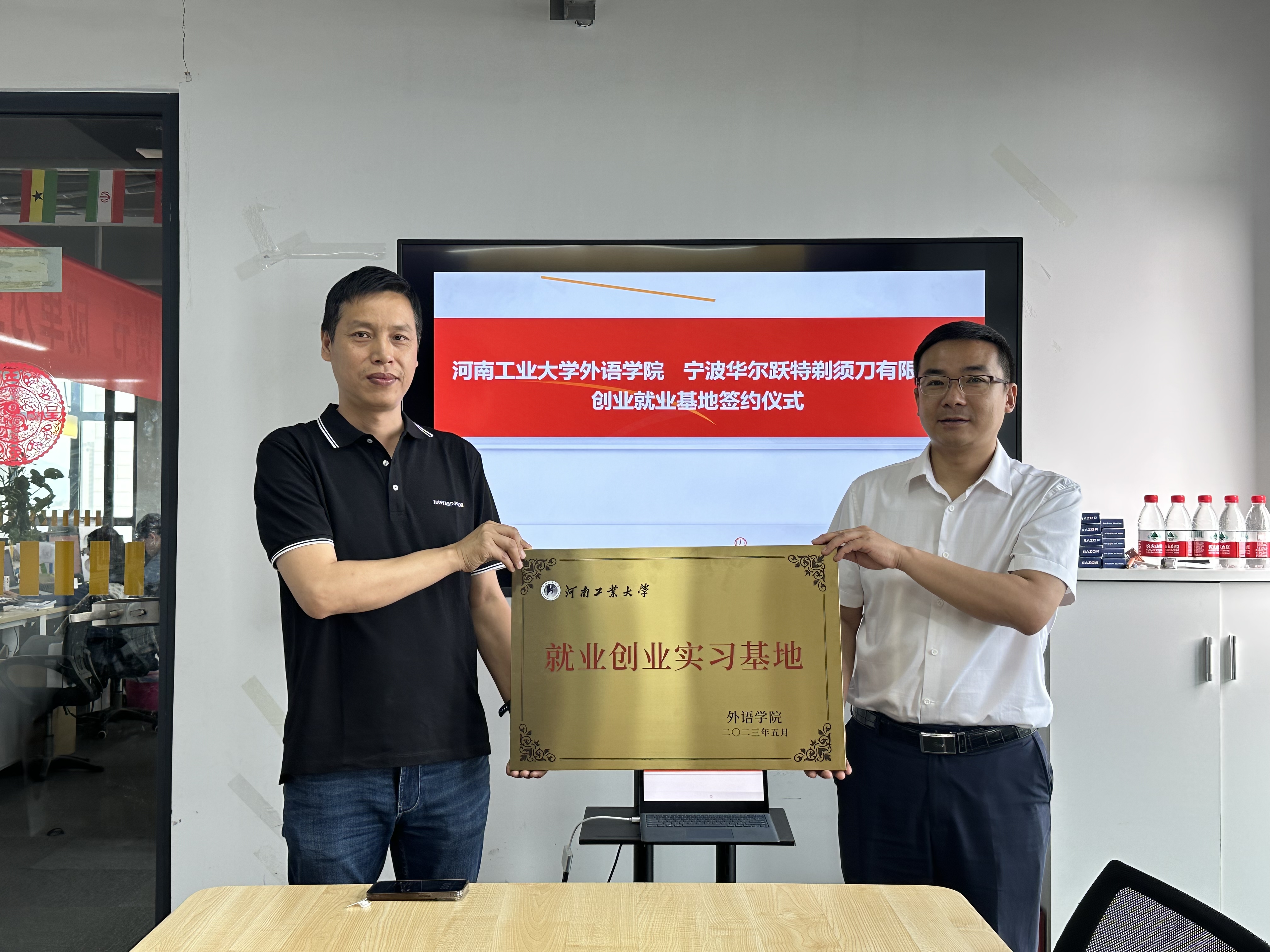 5月19日上午,在宁波华尔跃特剃须刀有限公司,校友平锦华带领参观了公司和园区,介绍了他的创业经历、与母校的互动支持,公司的发展历史、色情短视频、产品特色、经营机制、理念愿景及人才需求等情况。双方在人才招聘、就业创业服务、平台课程建设、企业导师聘用等方面进行了全方位交流,表示将以就业创业实践基地为平台,强化校企创新创业合作,持续提高公司与学院长期、全面、深度合作关系,实现校企共赢发展,最后王云涛书记聘请平锦华为就业创业导师。