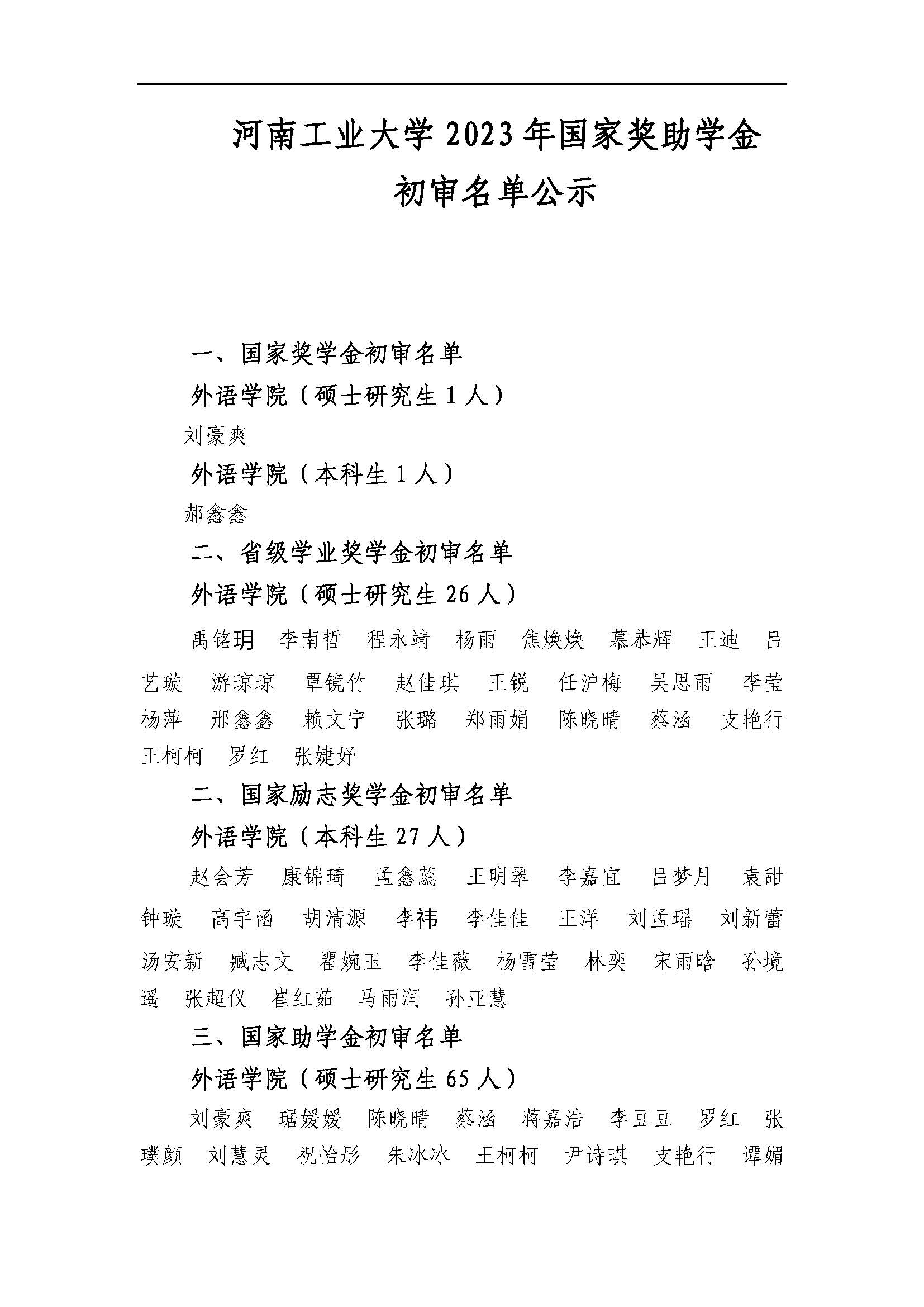 按照国家奖助学金评定有关文件要求,经学生个人申请、各年级(专业或班级)认定评议、小组民主评议、学院奖助学金认定工作组审核确认,现将名单面向全院公示5个工作日(2023