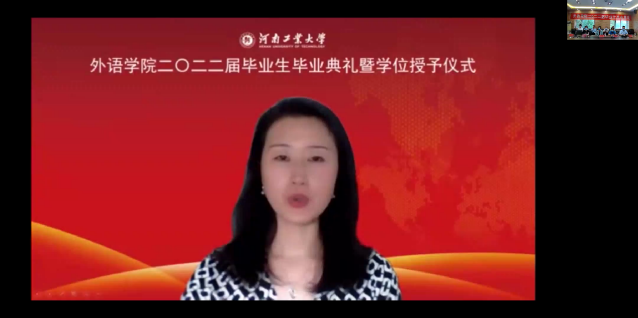 典礼在雄壮的国歌声中拉开了帷幕。副院长葛丽萍教授介绍学院2022届毕业生基本情况及学位授予情况。副院长沈国荣教授,宣读了河南省教育厅和我校关于表彰“优秀毕业生”的决定。