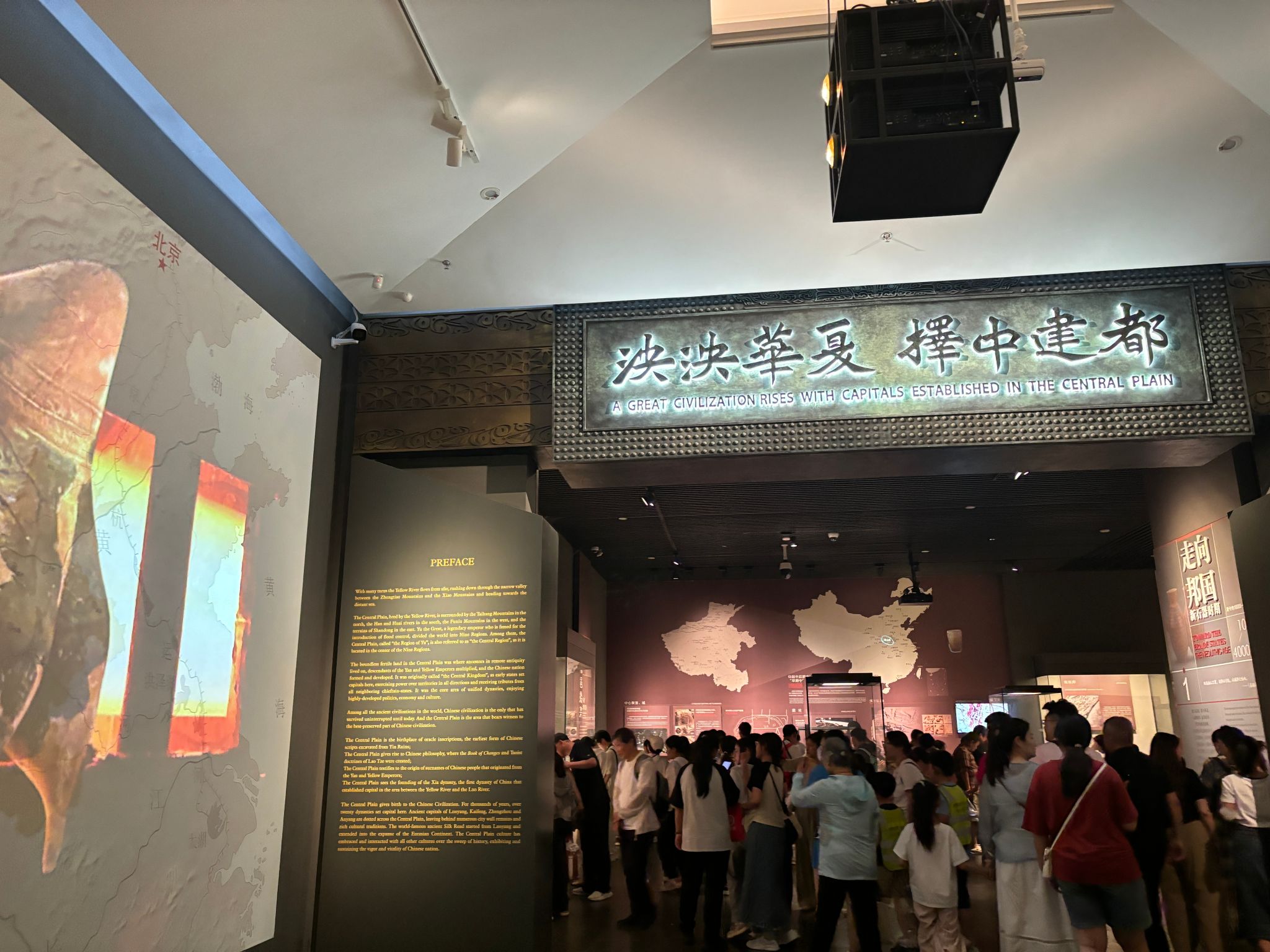 在展馆讲解员的引领下,同学们一起参观河南省博物院展馆。大家在各类展品前不时驻足,用心倾听,深受震撼,赞叹不绝。讲解员还讲述了河南博物院从新中国成立以来75年的辉煌历程,从黄河流域千年帝都的文化滥觞到出彩中原的崭新风貌,特别是党的十八大以来,在习近平新时代中国特色社会主义思想的指引下,河南博物院紧跟时代步伐,勇立行业潮头,肩负起了见证中原地区的文化记忆、弘扬中华文明发展的使命,取得了良好的文化和社会成效。