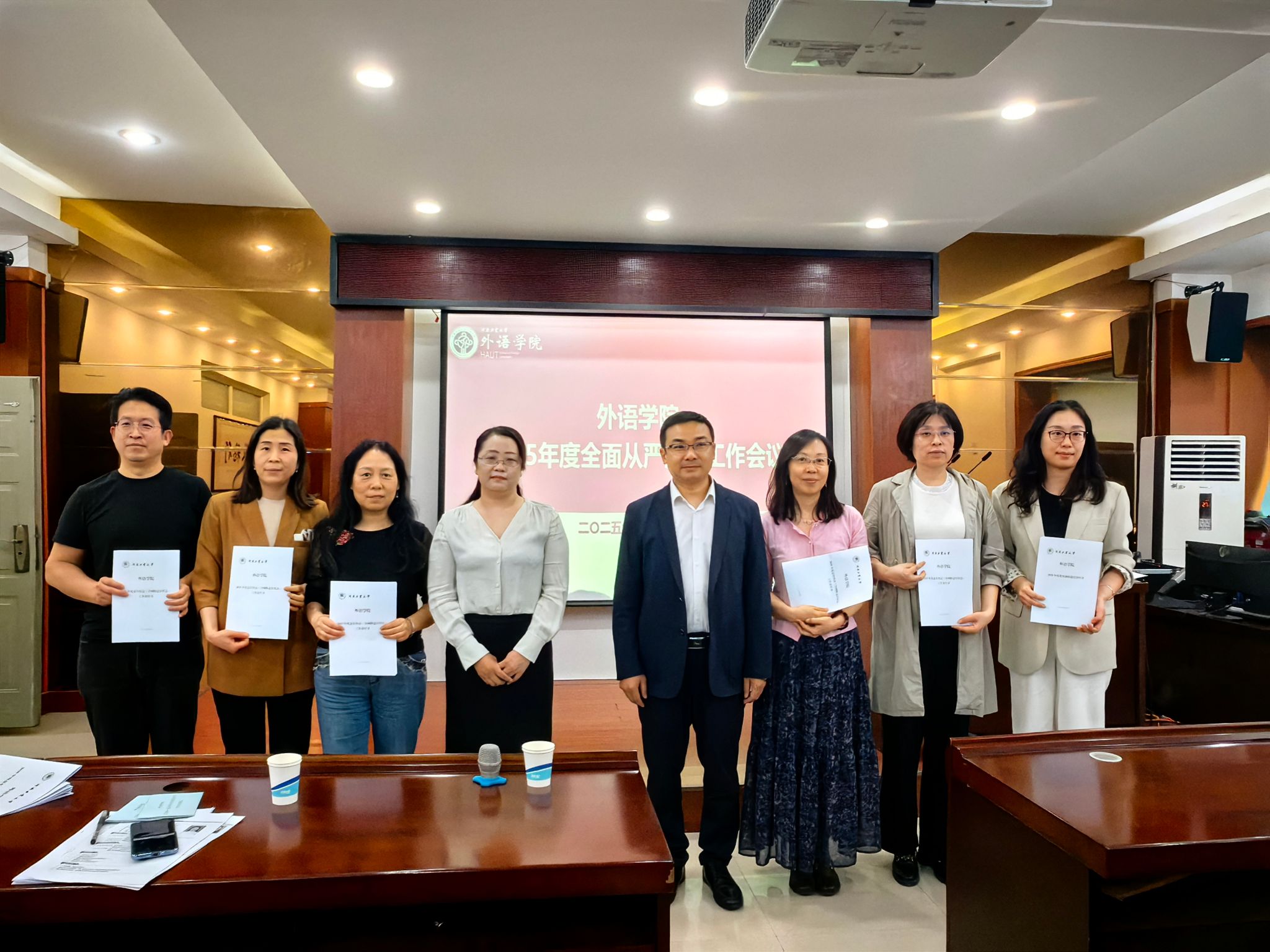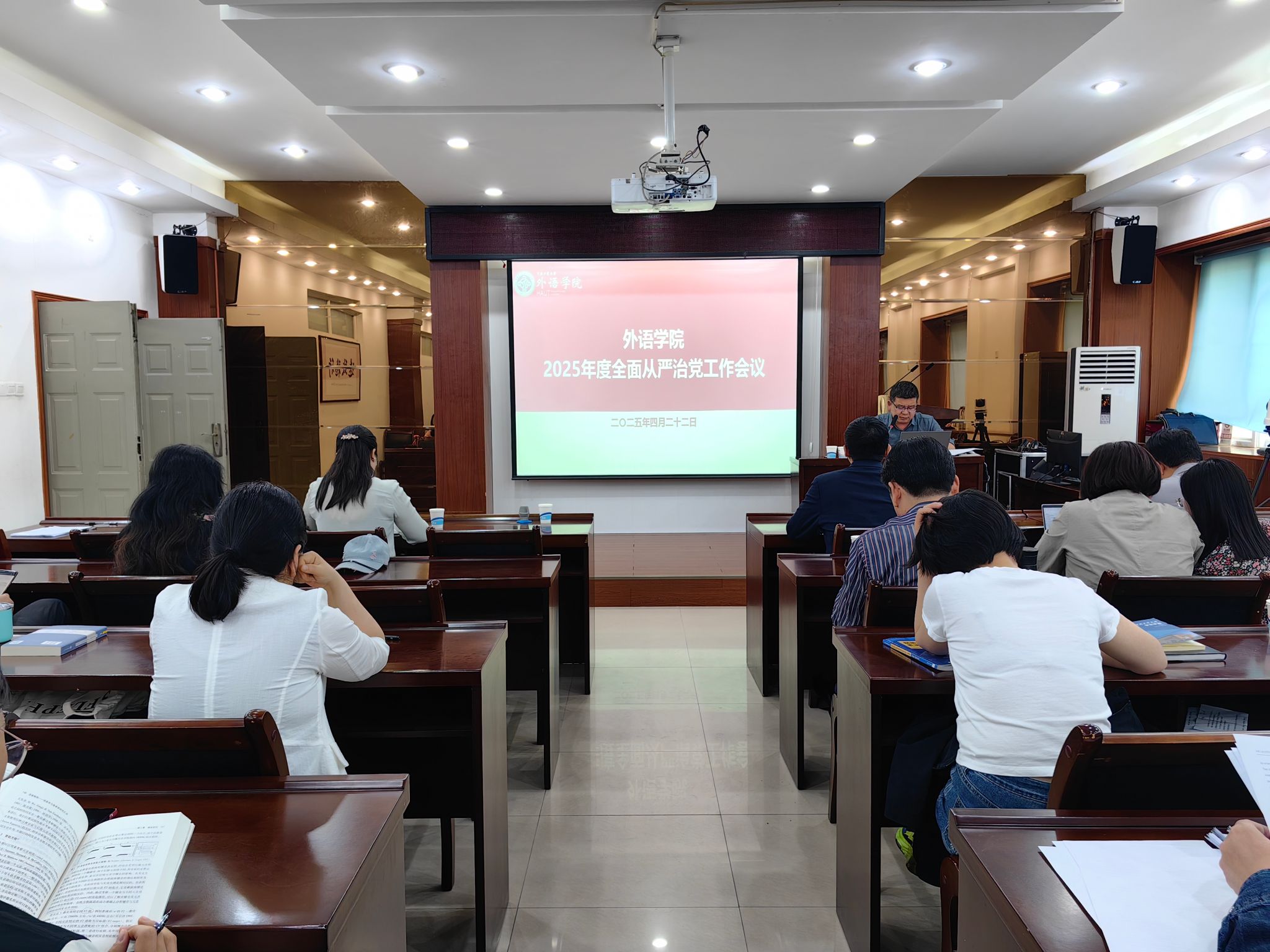 在5225会议室召开2025年全面从严治党工作会议。学院领导班子成员、全体党员、全体科室、系部负责人参加,会议由学院党委副书记、纪委书记王晓东主持。