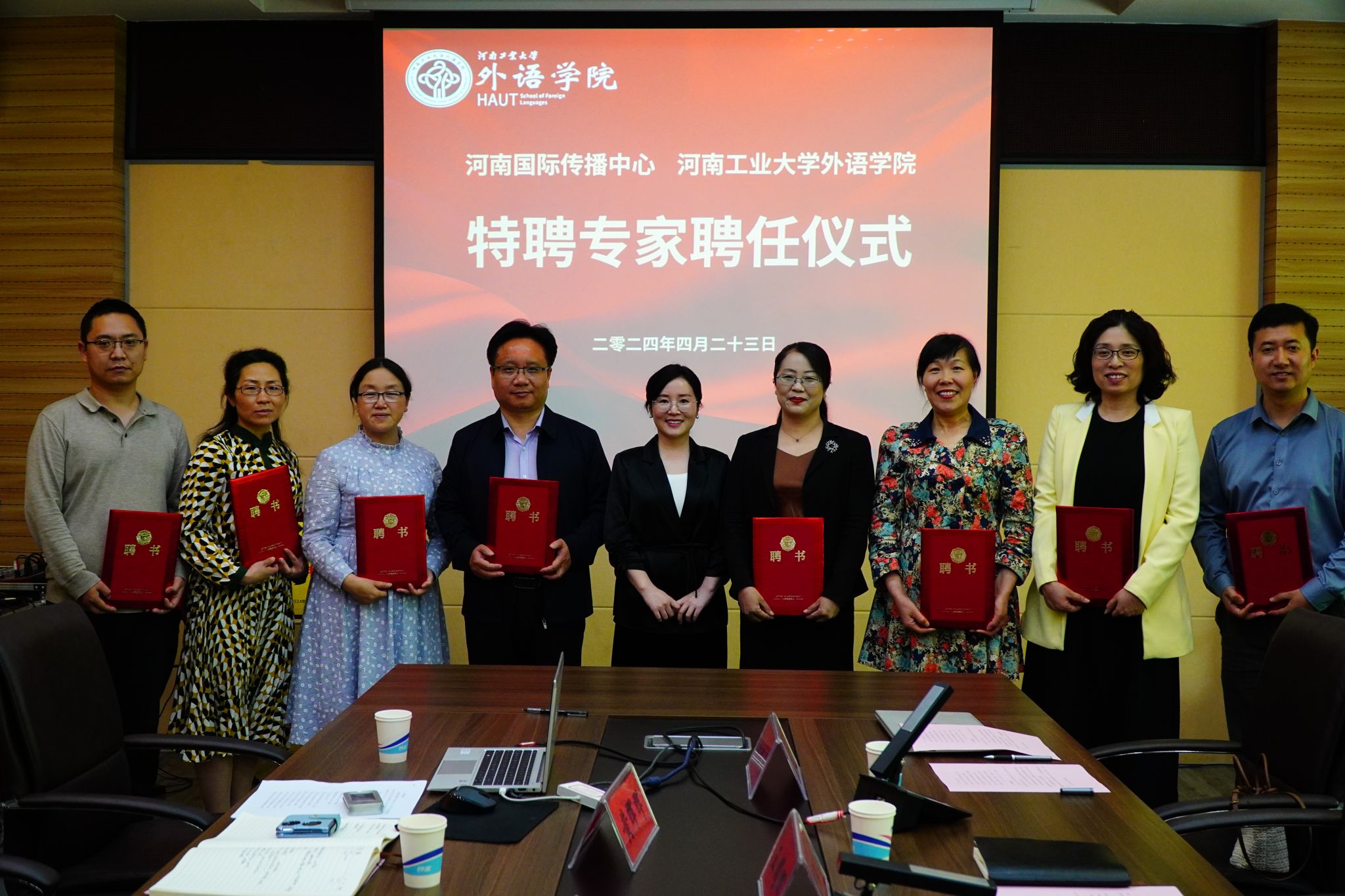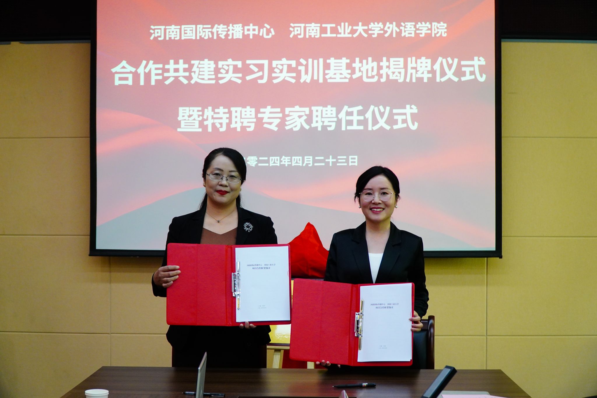 英语、西班牙语、日语语种共17位老师受聘为河南国际传播中心专家团成员。双方共同签署了合作框架协议。同时,双方合作共建实习实训基地正式揭牌。河南国际传播中心将依托自身平台优势,为色情短视频