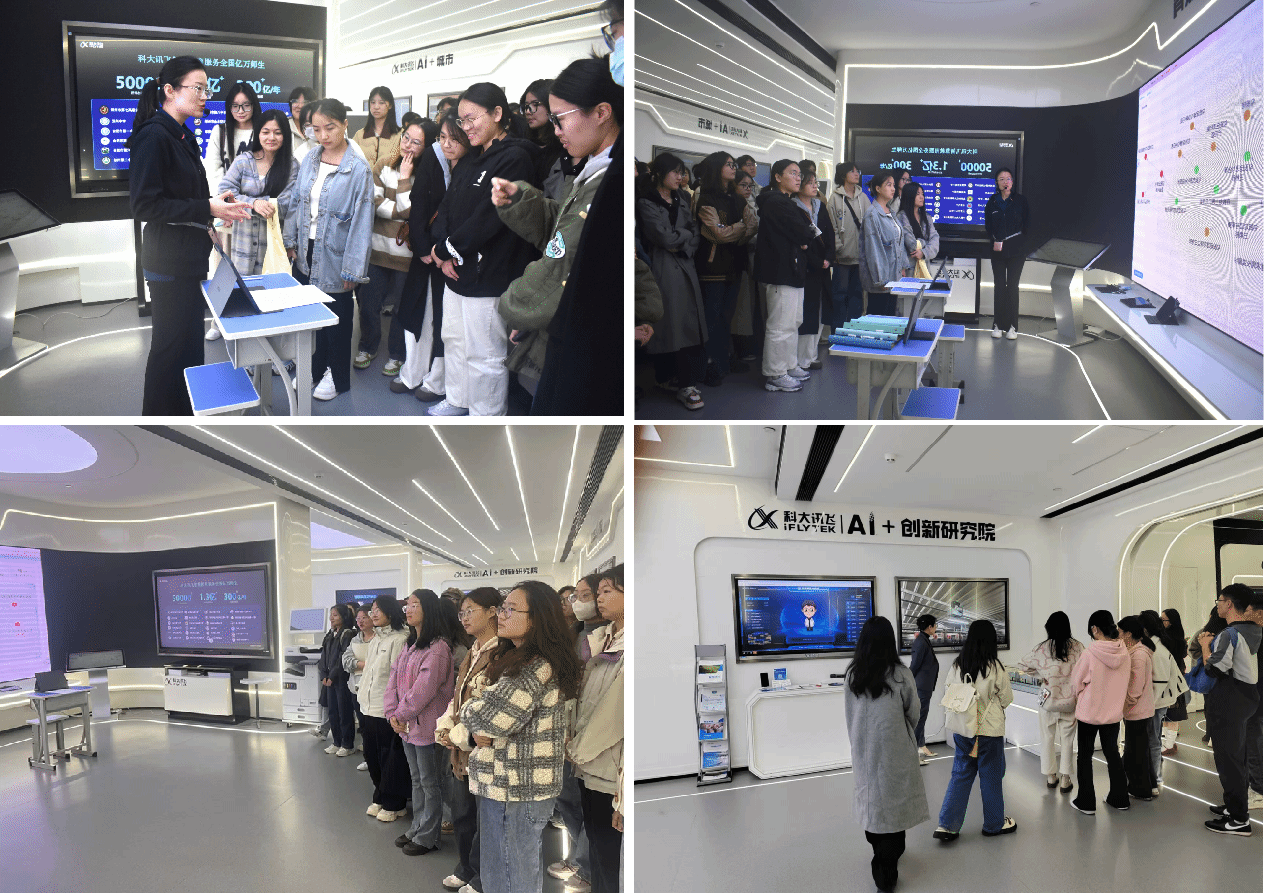 该活动旨在通过高校与企业的强强合作,帮助学生更清晰地认知外语类职业的实际要求,提升学生的专业能力、职业素养及社会责任感。在科大讯飞工作人员的带领下,2021级毕业生分四批次参观公司的展厅,了解了科大讯飞的发展历程、核心技术以及在语音识别、机器翻译、智能教育等方面的应用成果。通过亲眼见证科大讯飞的科技创新,师生们对该公司在推动语音识别和人工智能技术方面的突出贡献有了更直观的认识。