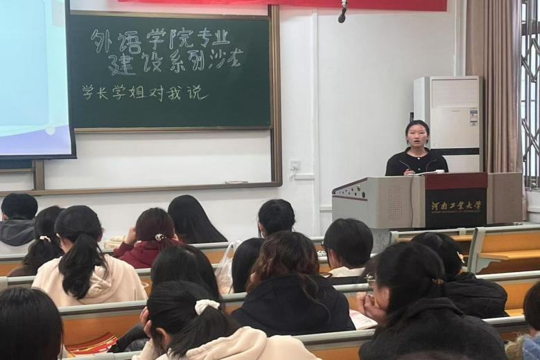 翻译系在嵩山路校区举办了一场精彩的经验分享会,本次分享会邀请三位优秀的学长学姐——孟鑫蕊、张潇然、郝鑫鑫主讲,由翻译系主任靳亚铭老师主持。