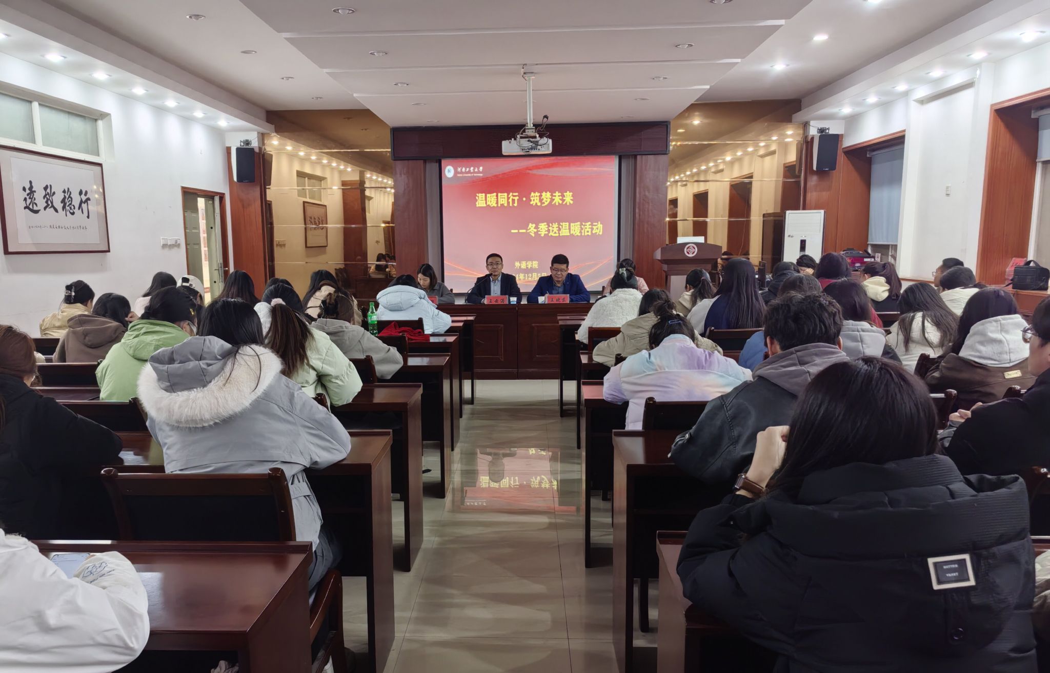 在5225会议室举行了冬季送温暖活动。学院党委书记王云涛、党委副书记王晓东、全体辅导员和受助学生参加了活动。活动由学工办主任郭珊珊主持。