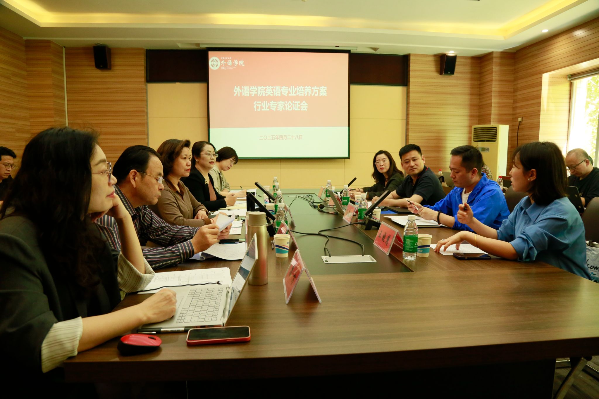 于4月28日下午在5231召开了2025版英语专业人才培养方案行业专家论证会。此次会议邀请了阿里巴巴国际事业部中西部大区市场经理时光、郑州经营者企业管理咨询有限公司总经理杨辰源、阿里巴巴国际事业部郑州区域客户运营王晓慧三位行业专家进行论证指导。教务处教师教学发展中心赵静主任、教学评估与质量管理中心相关负责人、校培养方案修订文科专家组成员及色情短视频