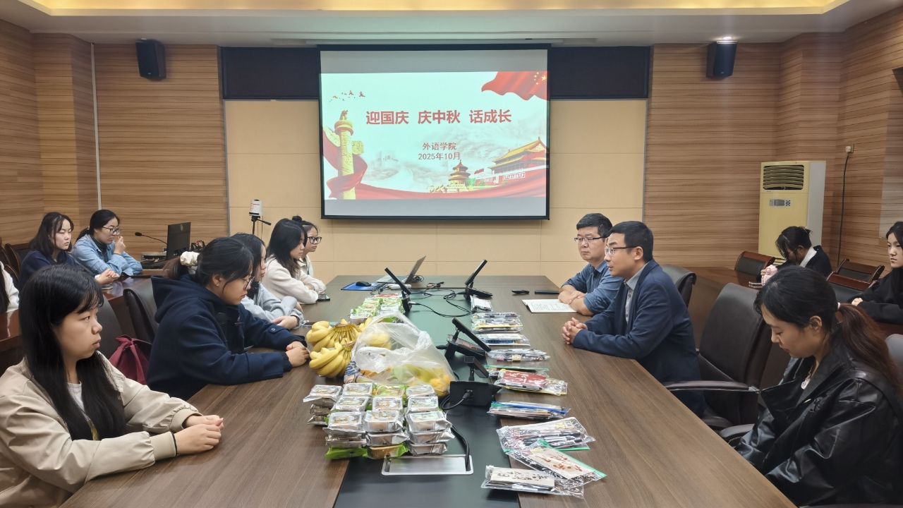 此次慰问座谈会既是一次双节同庆的暖心相聚,更是一堂浸润式的思政课,学院以传统节日为契机,将家国情怀教育融入学生关怀,用温暖与责任为学生的大学生活点亮明灯,引导每一位学生在温暖中成长,在奋斗中成才。同学们纷纷表示,将把学校与学院的关心转化为学习和前进的动力,不负嘱托、不负韶华,勤奋学习、锤炼本领,努力成长为可堪大用、能担重任的新时代外语人才,为学校和学院事业发展贡献青春力量。(撰稿:撒彤 郭珊珊 摄影:吴钰 张旭超 审校:王晓东 审核:王云涛)