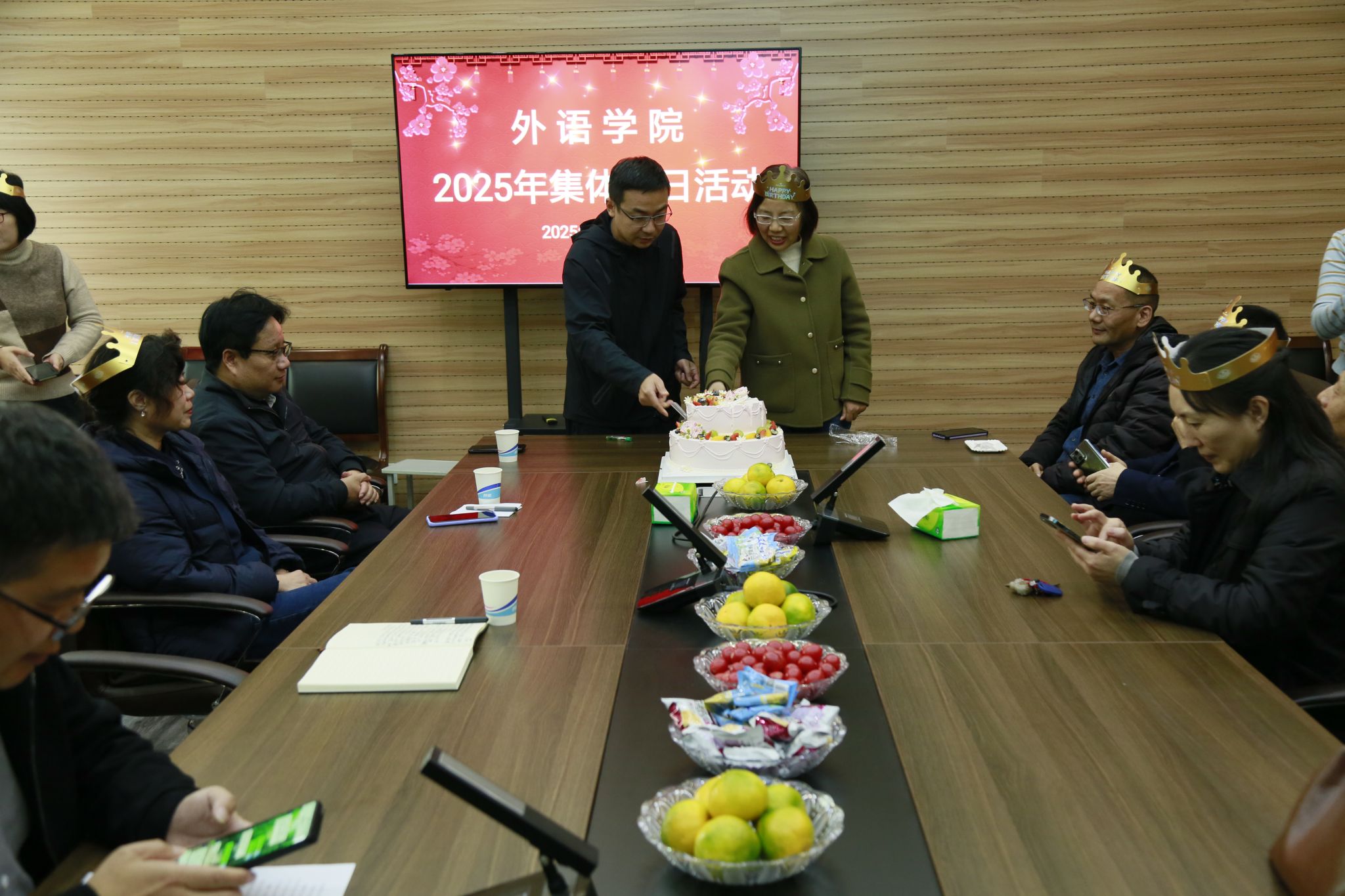 在5231会议室举办2025年度集体生日活动。学院领导班子、今年逢整十生日和55岁生日的教师及各系部教师代表齐聚一堂,共庆温馨时刻,共享生日喜悦。活动由学院党委副书记、工会主席王晓东主持。