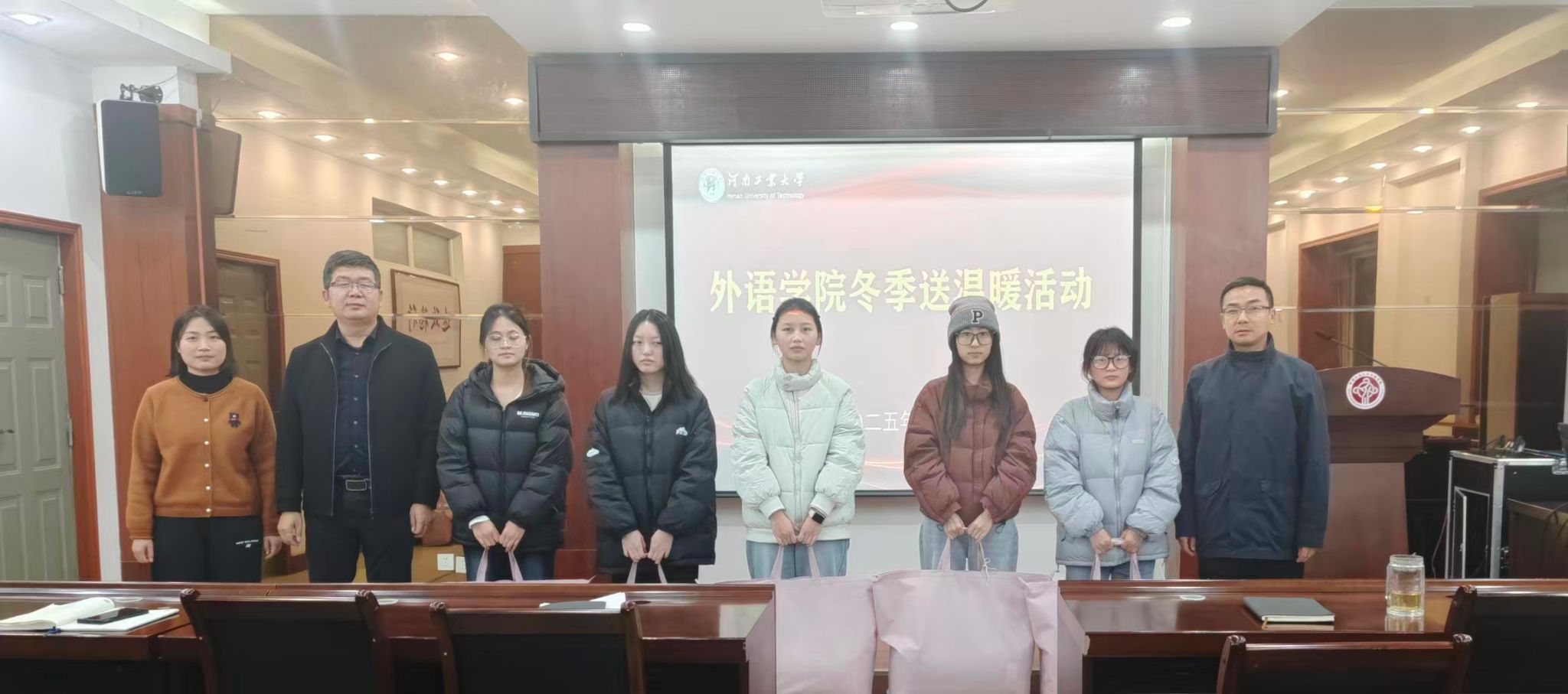 在博闻楼5225会议室开展冬季送温暖活动,学院党委书记王云涛、副书记王晓东、学工办主任郭珊珊及受资助学生代表参与本次活动。