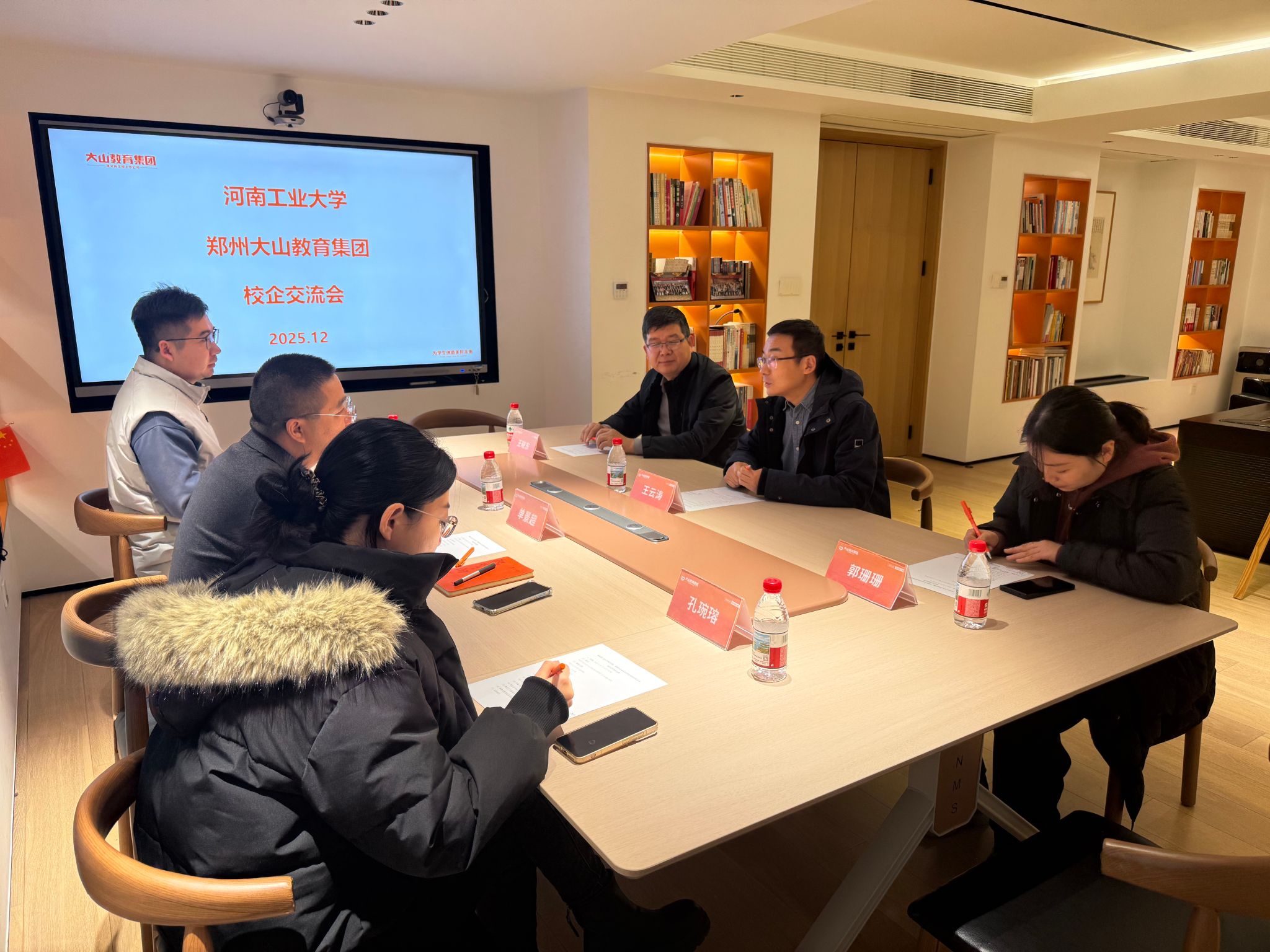 党委书记王云涛、副书记王晓东及学工办主任郭珊珊一行前往大山科技培训有限公司开展访企拓岗专项调研活动。大山教育集团常务副校长单景超、人力资源总监张军及人力资源主任孔琬瑢与调研团队围绕校企合作展开深入交流。