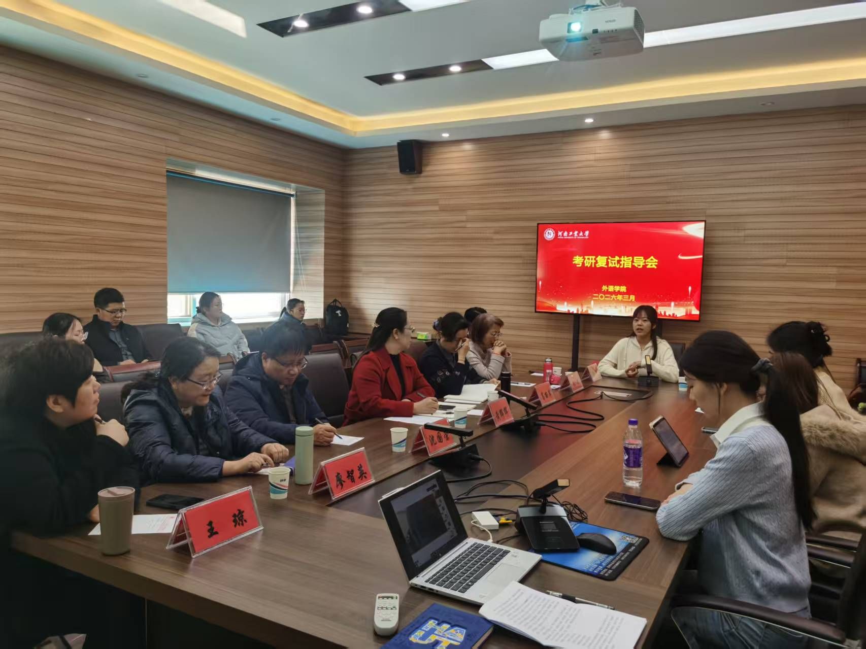 紧紧把握2026届毕业生考研复试的关键节点,于3月9日下午在5231会议室组织开展研究生复试模拟演练活动。学院院长黄辉辉、党委副书记王晓东、副院长沈国荣、葛丽萍,以及各系部专业教师代表担任模拟复试评委,全体2026届考研上线学生参与活动。本次活动采取线上线下相结合的方式开展,由辅导员郭珊珊主持。