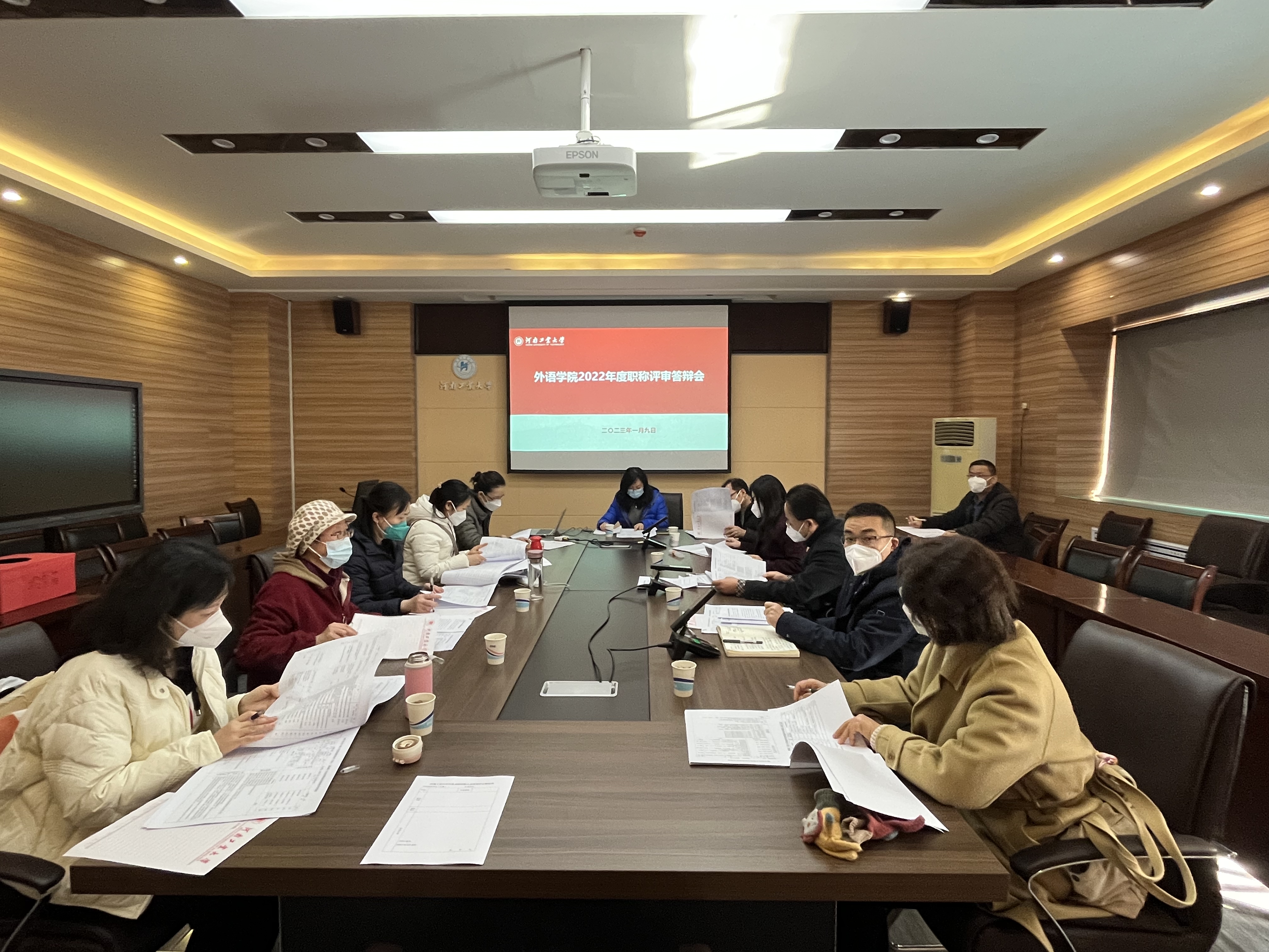 在5231会议室召开了2022年度职称评审推荐会。本次会议由学院11位教授和副教授组成了评议推荐小组。申报晋升专业技术职务的9位教师在会上进行了述职和答辩。