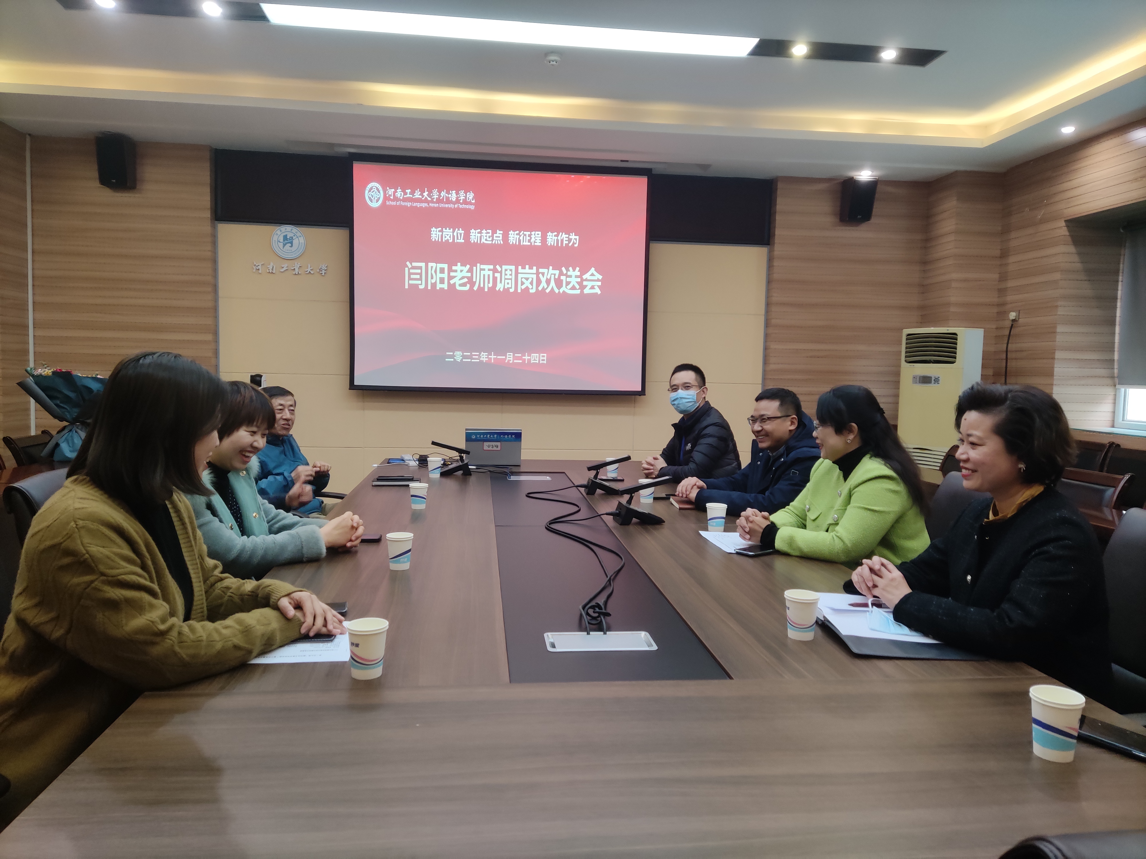 在5231会议室为即将进入新岗位的闫阳老师举行欢送会,学院领导班子成员及行政办公室全体老师参加。