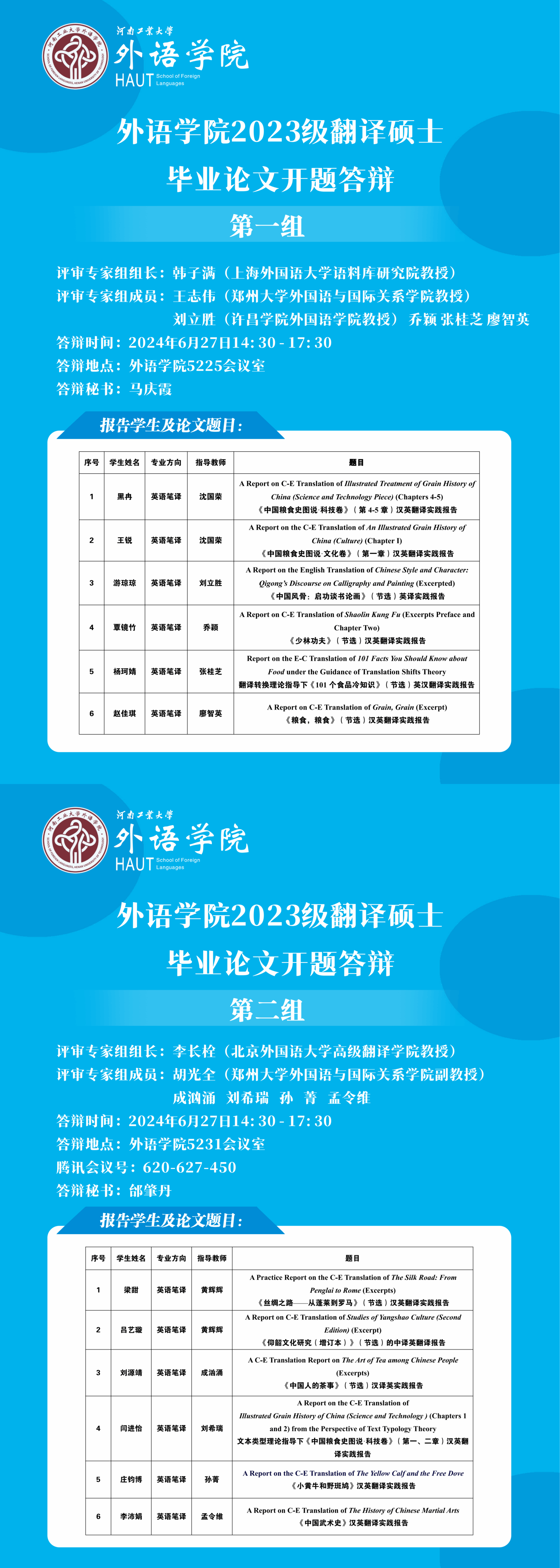 色情短视频 2023级翻译硕士毕业论文开题答辩通知