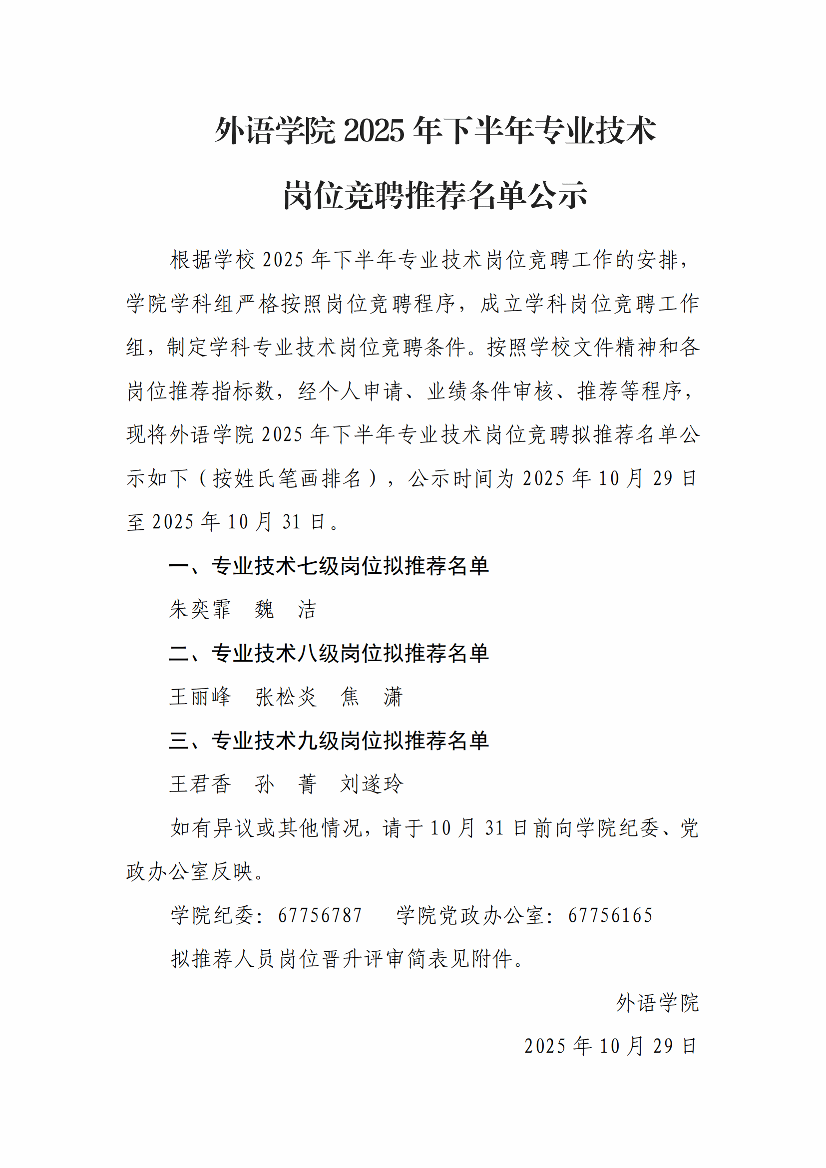 色情短视频 2025年下半年专业技术岗位竞聘推荐名单公示