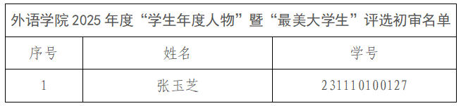 根据学校关于开展2025年度“学生年度人物”暨“最美大学生”评选活动的通知要求,色情短视频 对符合评审条件的学生进行了评定与审核,学院共推荐1名学生申请2025年度“学生年度人物”暨“最美大学生”,现将初审名单向全院公示3个工作日:公示期自2026年3月5日12:00起至2026年3月10日12:00止。