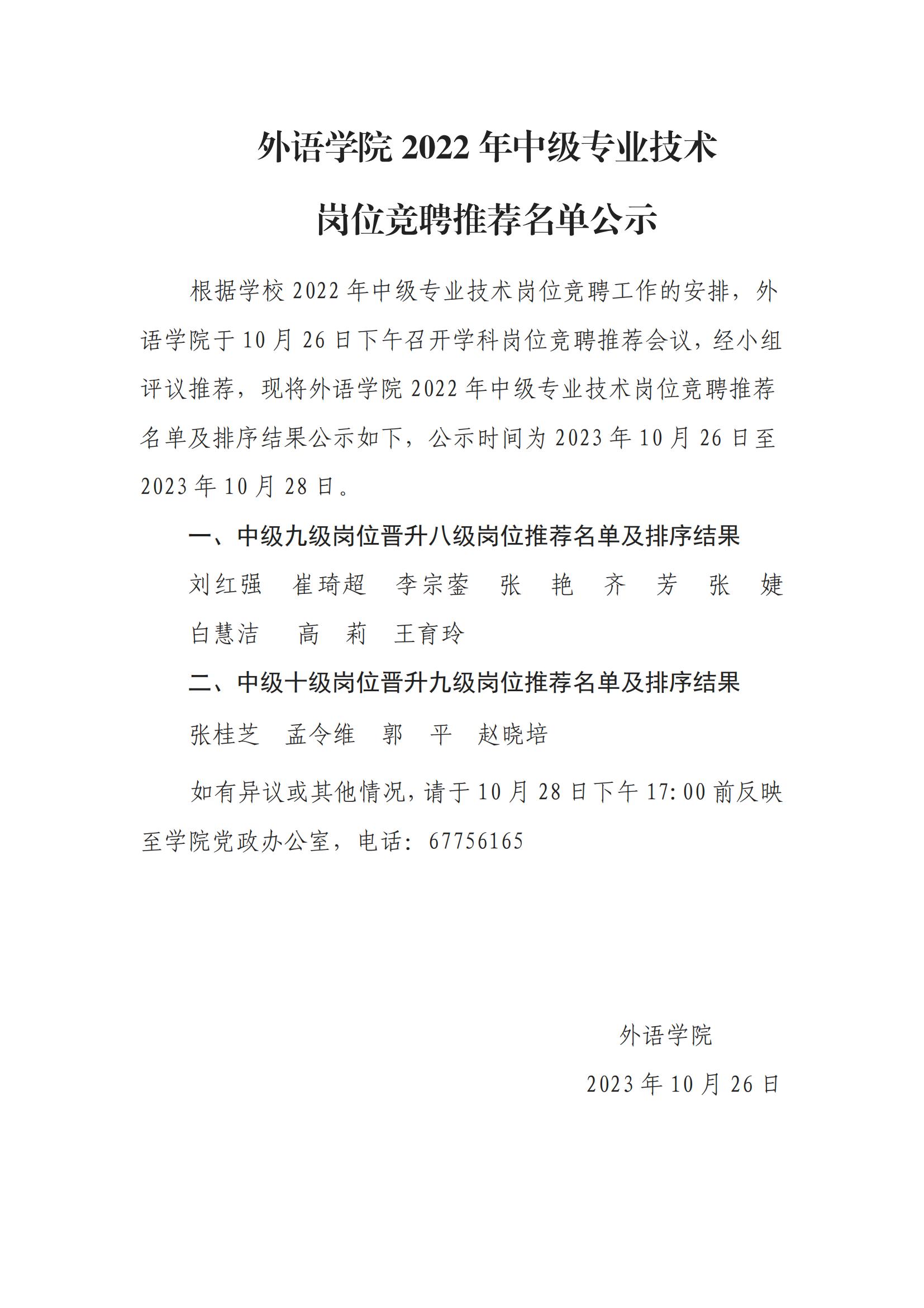 色情短视频 2022年中级专业技术岗位竞聘推荐名单公示