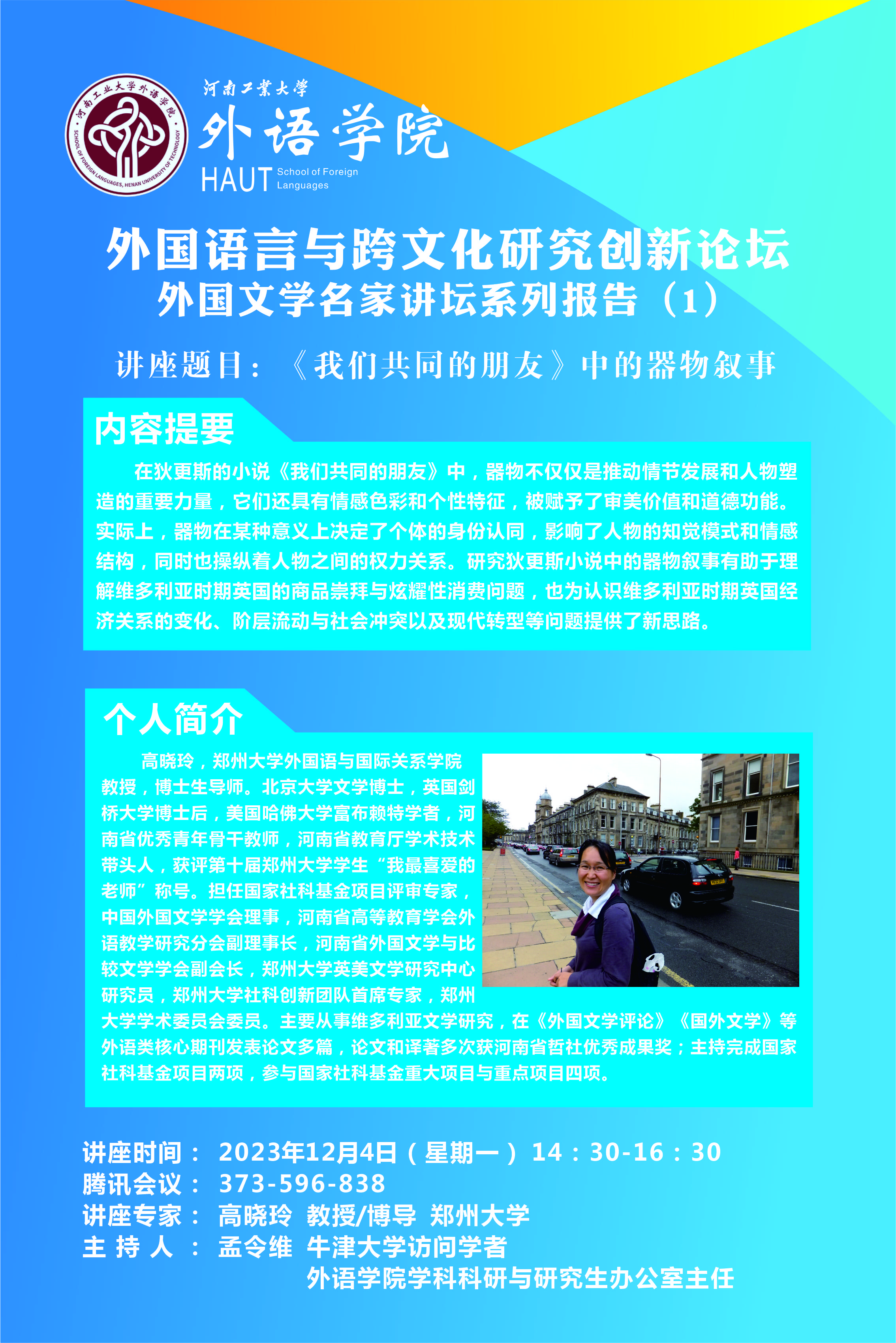 外国语言与跨文化研究创新论坛——外国文学名家讲坛系列报告