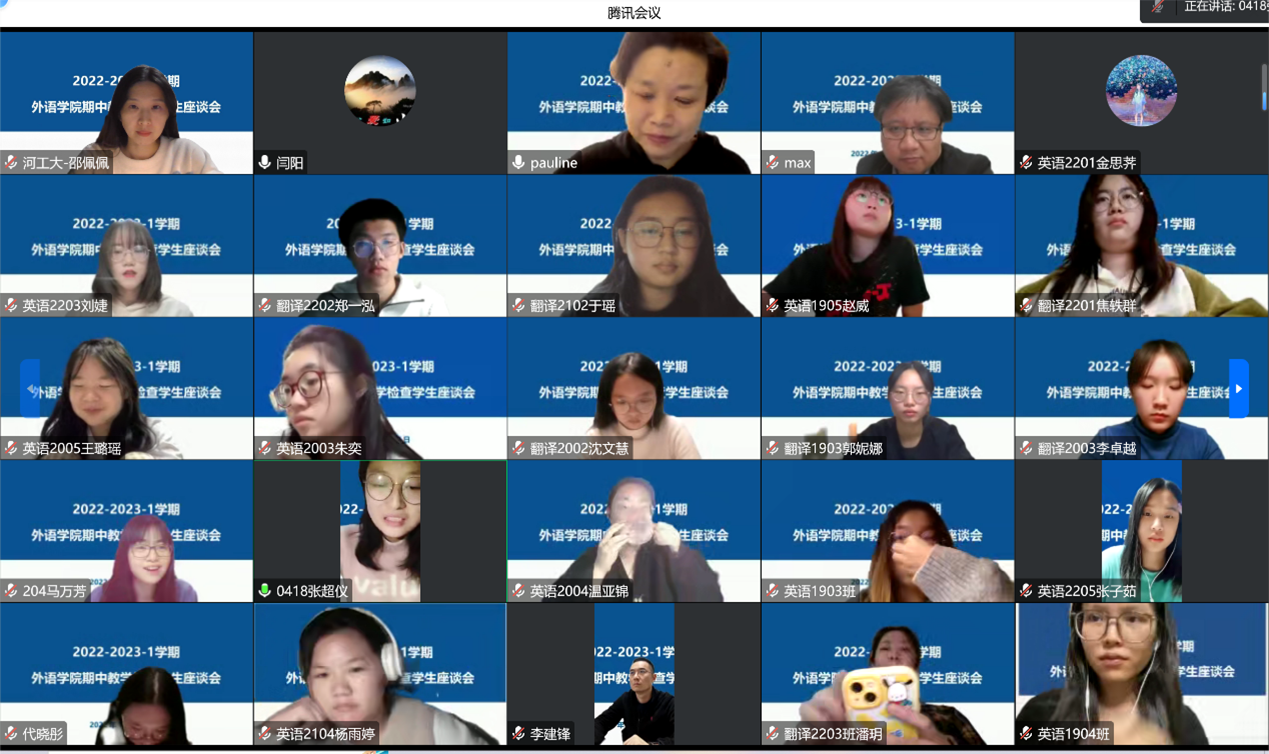 分别于11月17日、18日在线召开学生座谈会和教师座谈会,倾听师生心声,了解教情学情。学校教学督导程大友教授、教务处教师教学发展中心主任赵静、学院领导班子、本学期任课老师以及各年级学生代表等参加了座谈,会议由色情短视频