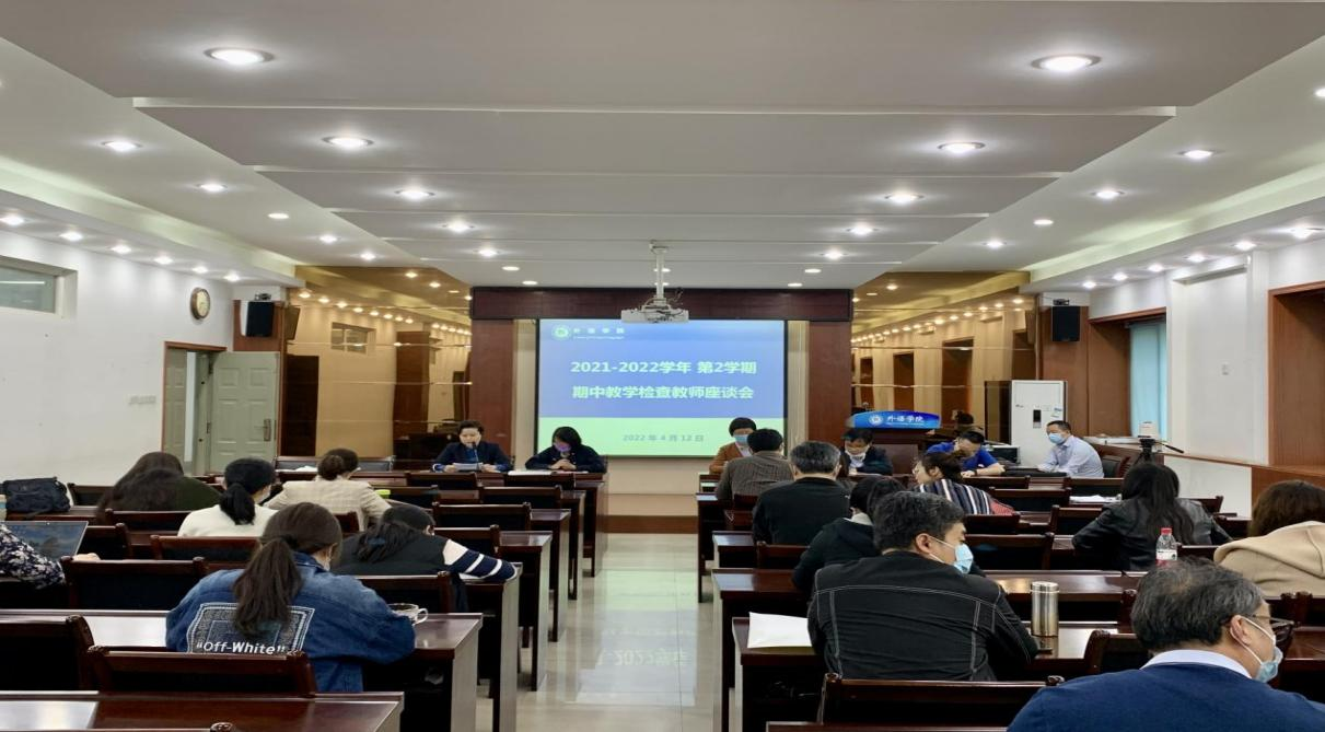 在会议室5225召开了2021-2022学年第二学期期中教学检查师生座谈会,学校督导组专家关杨老师、学院领导班子、教学办、学工办、专业任课教师和学生代表参加座谈会。会议由副院长葛丽萍主持。