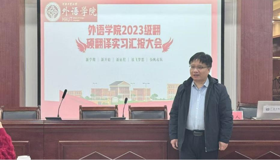 交流与合作中心进行实习,负责学校的外事工作以及进行对外交流;杨珂婧在郑州市译线通翻译有限公司进行实习,负责项目笔译和会议口译等工作。同学们的汇报内容涵盖了实习过程中的具体任务、遇到的挑战及解决方法、翻译技术的应用、跨文化沟通实践心得以及职业能力的提升等多个方面,充分展示了他们的专业素养与实践能力。