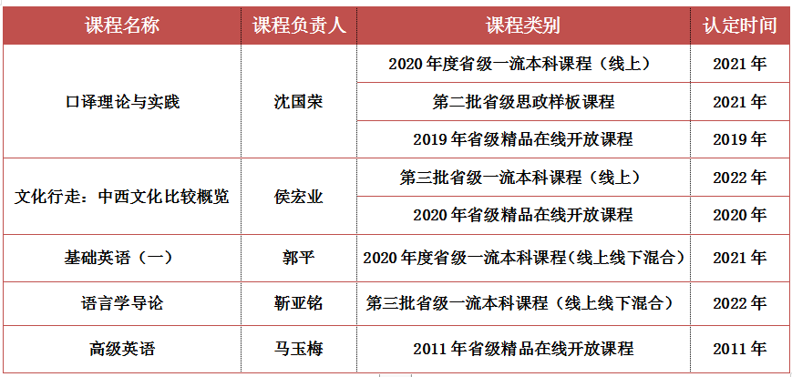 省级一流本科课程、思政样板课程、精品在线开放课程