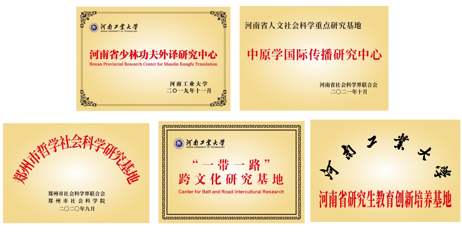 中原特色传统文化翻译与传播中心依托武术、粮食、黄河文化为优势特色,传承和弘扬有深厚历史积淀的中华优秀粮食文化、武术文化,服务国家粮食安全战略,为学校优势特色学科对外合作交流提供语言服务保障,2020年获批郑州市哲学社会科学研究基地。